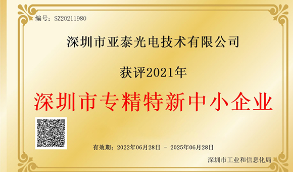 喜讯|深圳亚泰光电获得深圳市“专精特新”企业荣誉称号!