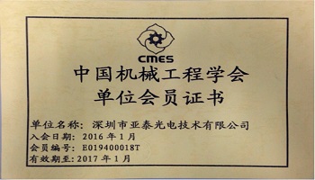 3月7日上午,深圳市亚泰光电技术有限公司正式接到中国机械工程学会颁发的“中国机械工程学会单位会员证书”,经过前期申请、材料评审等一系列工作,亚泰光电正式成为中国机械工程学会的一员。