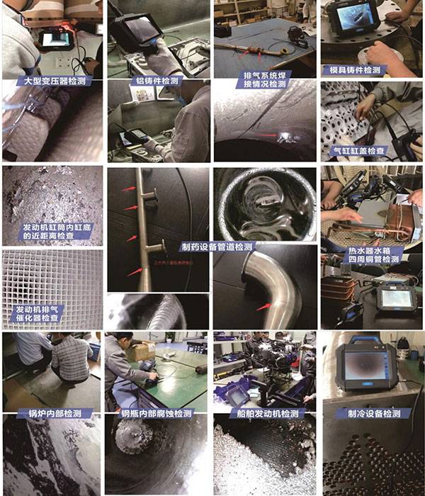 SIE-P系列手持式高清视频内窥镜可广泛应用于航空、汽车、船舶、电气、化学、电力等现代核心工业生产、检修等多个环节。具有直接可视的特点,能够直接观测管道、涡轮、汽缸、发动机等大型装置内表面是否存在缺陷或异状。可进行实时拍照和视频录制,为分析设备使用状况及设备生产保障提供不可或缺的数据采集。