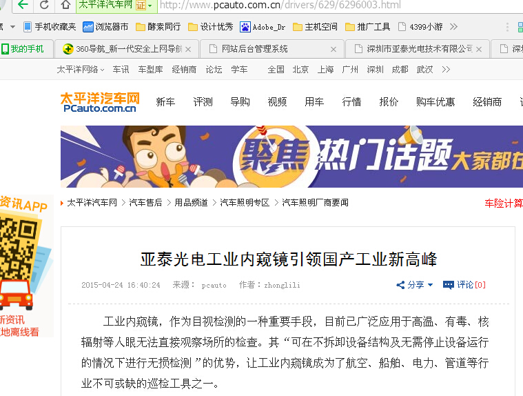 太平洋:亚泰光电工业内窥镜引领国产工业新高峰