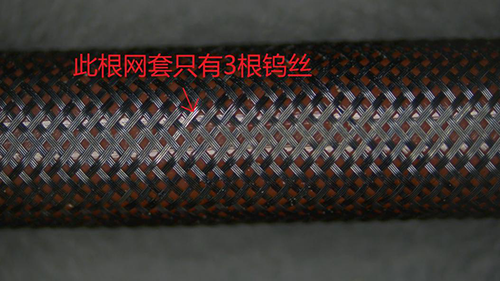 黄工检验19PCS 钨丝网套发现:13PCS合格,6PCS不合格,合格的钨丝网套都是采用4股钢丝一组纵横(4*4)交织而形成,而6PCS不良品为4*3钨丝编织。