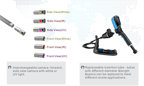 摄像头可互换,一旦摄像头损坏,无需送回管道或整机维修,只需更换摄像头即可,大大减轻了客户长期使用的后顾之忧 。