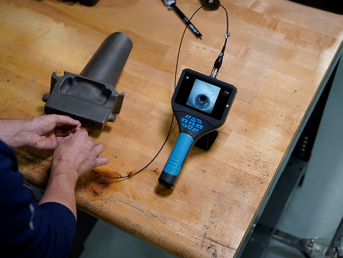图片:Yateks B+ 便携式 2.2 毫米 OD 视频内窥镜正在检查涡轮叶片组件。
