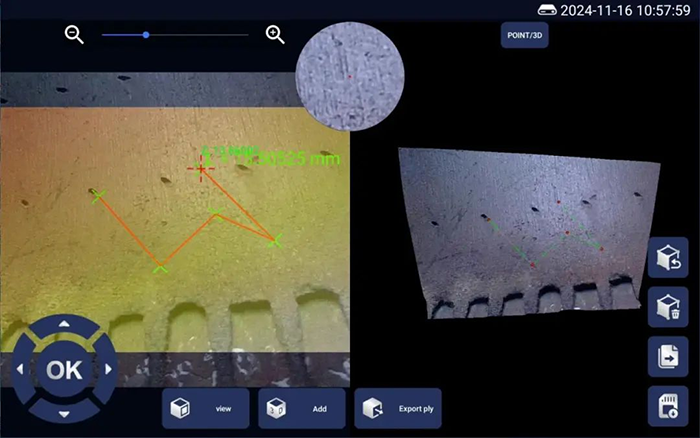 亚泰光电三维内窥镜的核心突破在于高精度三维建模与实时测量。其搭载的双目立体成像技术,可生成3D点云图、深度图和剖面图,最小测量精度达到0.01mm,远超传统二维检测的局限。