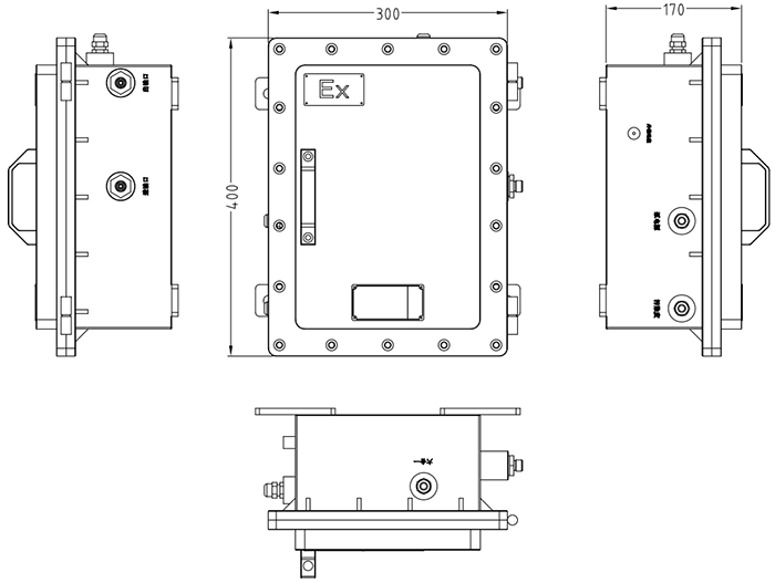 防爆在线油液监测装置组成主要由电气控制箱、传感器隔爆箱、本安传感器防护箱等组成。