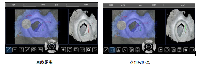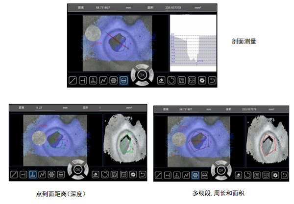1、精准的三维测量功能——带测量功能,可生成3D点云图、深度图、剖面图等重现被测物体外貌轮廓,其中三维立体点云图可缩放、旋转等,实时验证选点准确性,避免选点错误导致的测量结果失准。