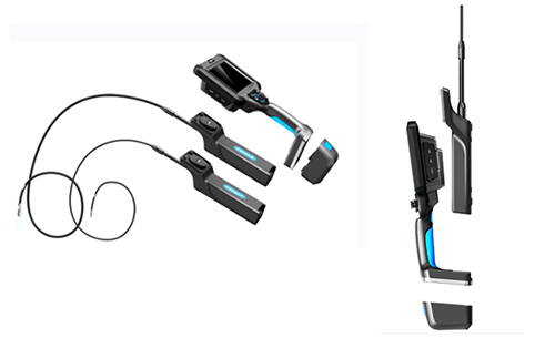 3、TIE三维内窥镜采用模块化设计,可快速拆装更换——触摸屏和按键双智能化操作设计以及符合人体工程学设计的手柄,便于握持和单手操作;大容量可拆卸充电的电池包,提供强力续航; 可更换的手柄,一主机可搭配多手柄。
