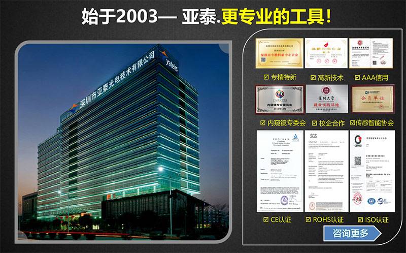 亚泰光电,国家高新技术企业和深圳知名品牌,10余年工业内窥镜和油品分析仪研发、生产行业经验,国内外知名企业合作供应商,产品优惠热线:13316911816(微信同号) 0755-86656096 0755-86656390 联系我们获取更多优惠详情,期待您的指导与交流!
