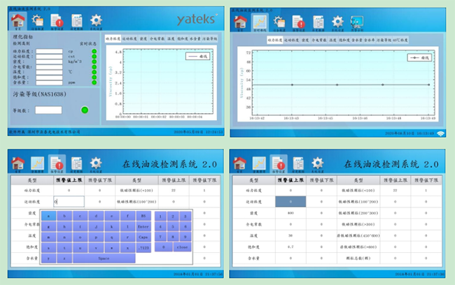 本系统集成了多种技术先进的在线油液传感器,可监测润滑油粘度、密度、温度、介电常数、水分、金属磨粒、污染度传感器等等多种润滑油的理化指标、污染度指标、金属磨粒指标。能判断设备早期故障和及时提醒用户,与传统的时间表相比,可以采取更低成本的保养措施,实现为设备长久稳定运行保驾护航。